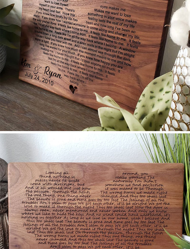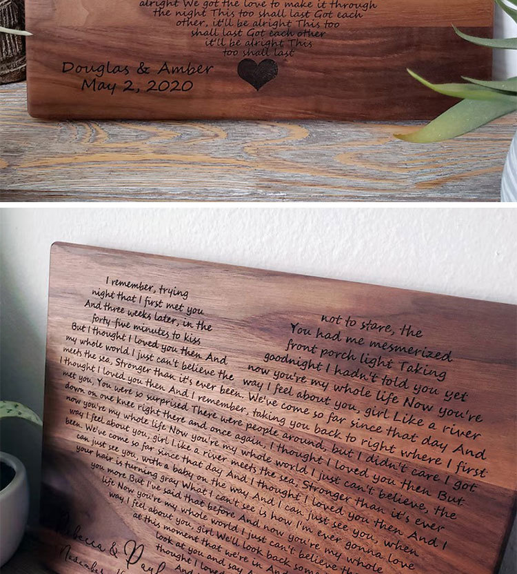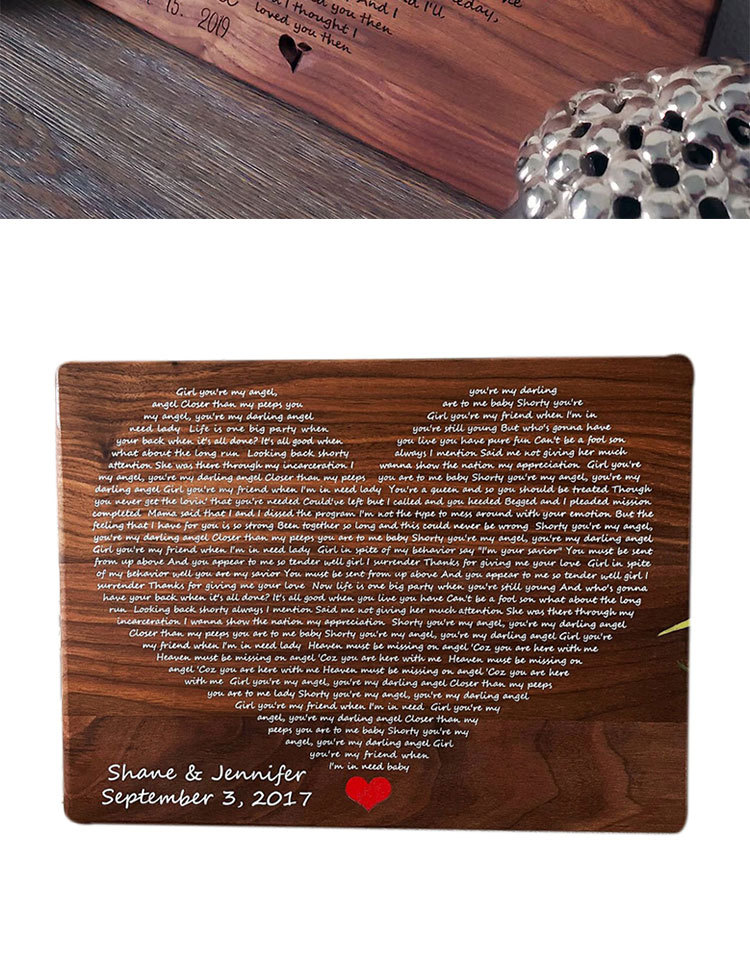 Wooden Figurine with Heart-carved Wedding Lyrics